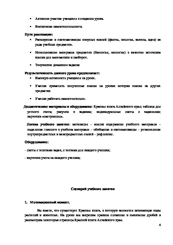 Дидактические материалы и оборудование: Красная книга Алтайского края; таблица для