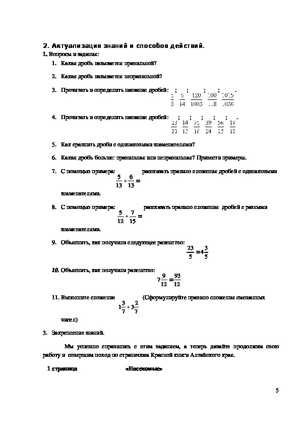 дробей», обобщение и систематизацию знаний учащихся по теме «Обыкновенные дроби»,