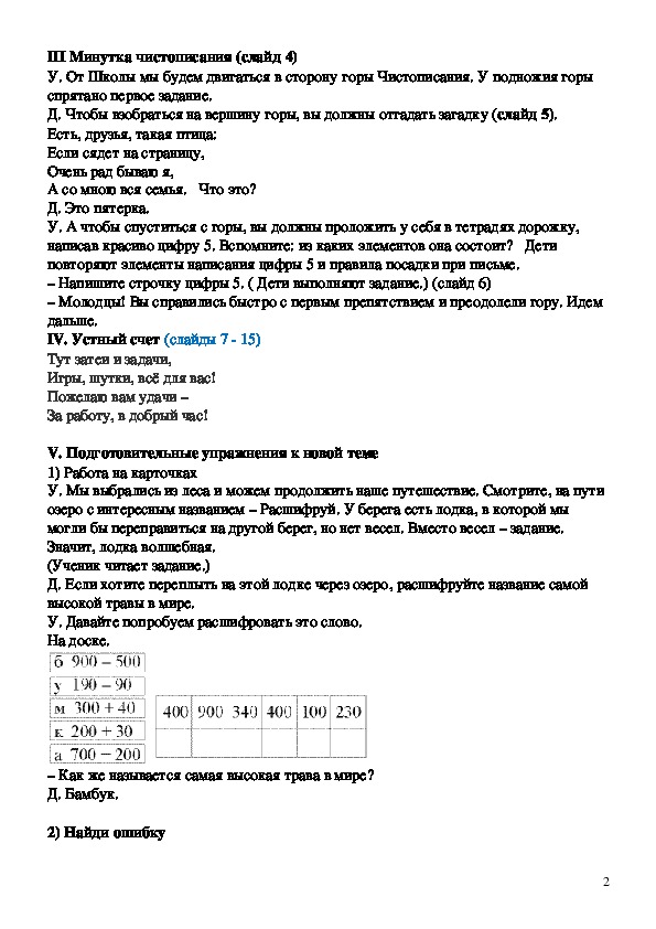 У. Вот мы прошли болото, научились решать новые примеры. Теперь мы рядом с