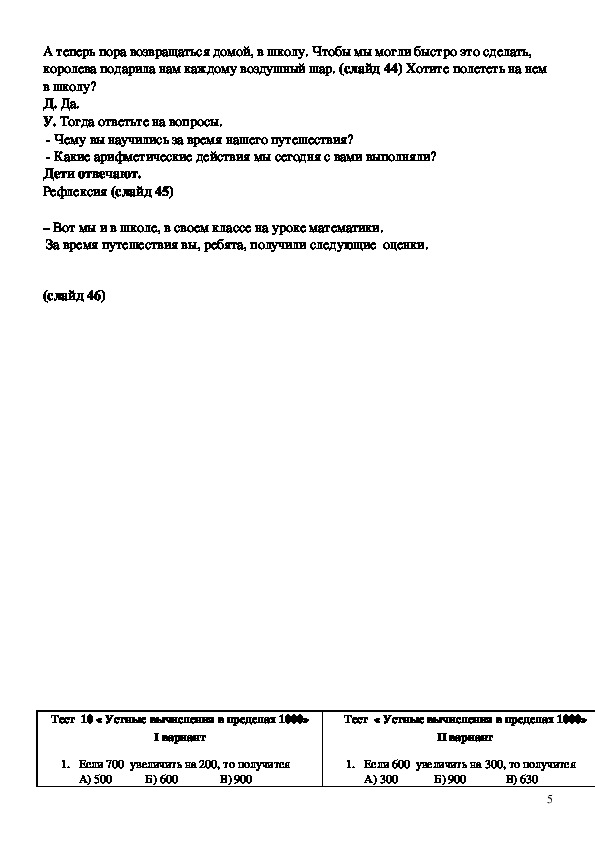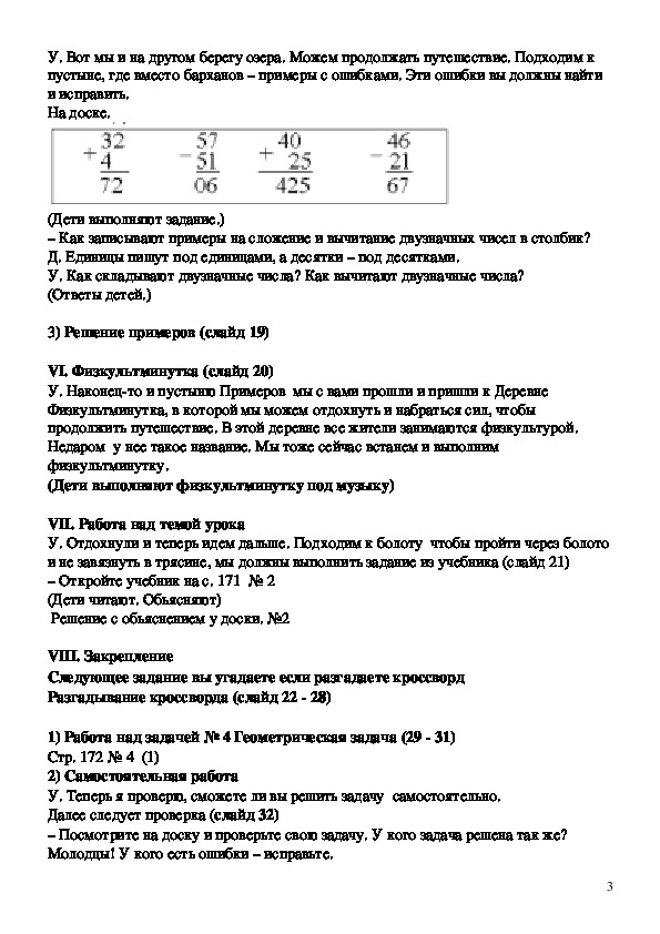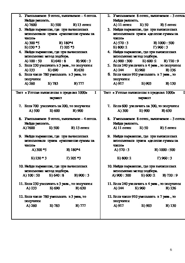 арифметических действий в пределах 1000, над развитием вычислительных навыков,