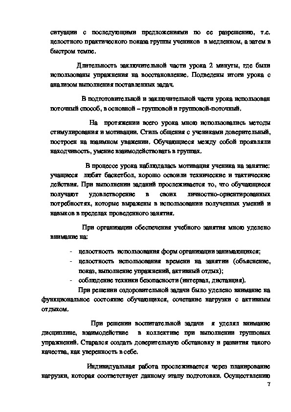 упражнений. Старался создать доверительную обстановку и развития такого