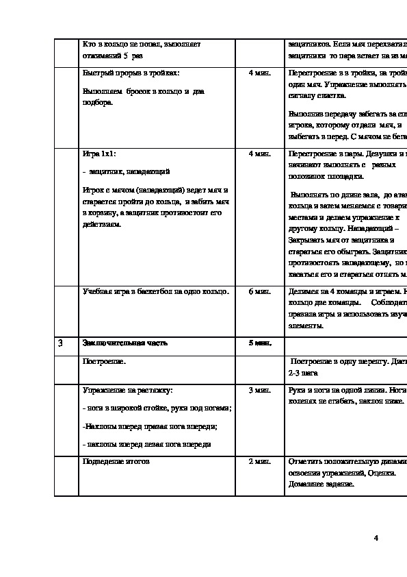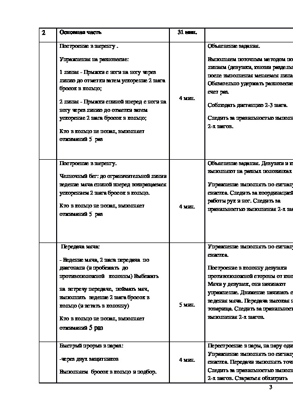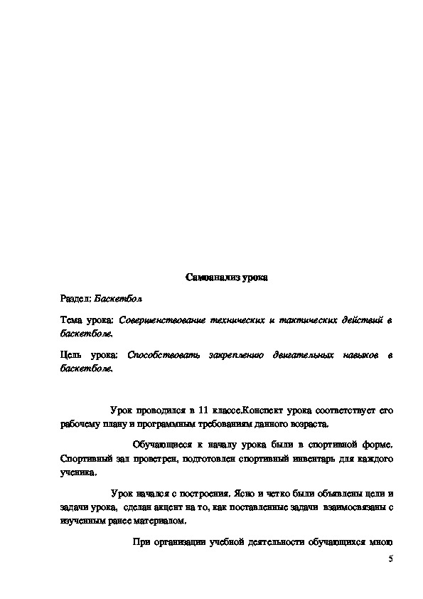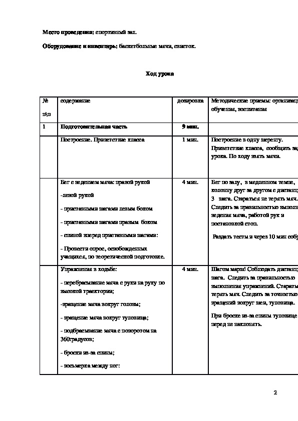 Конспект урока "Баскетбол" 11 класс.