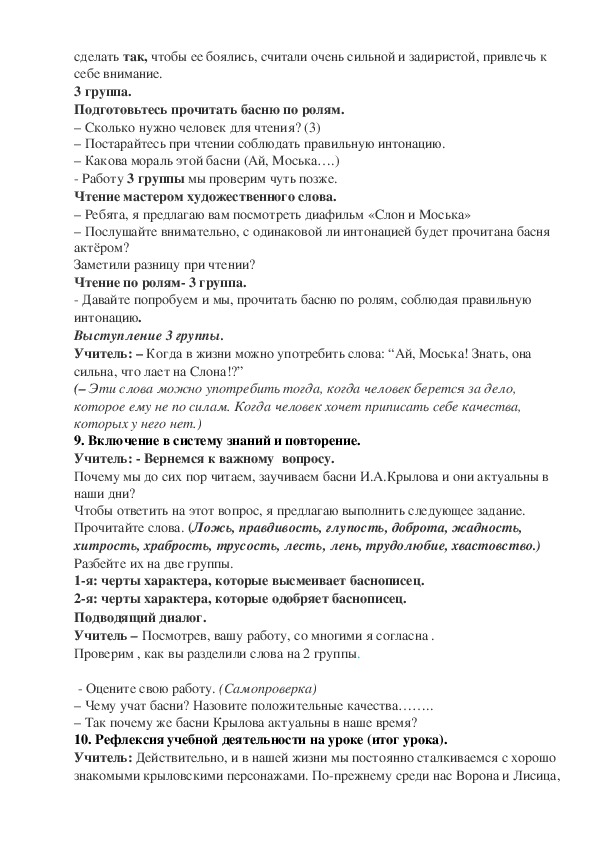 • Воспитывающие: воспитывать интерес к чтению басен и к литературе как части общей культуры, способствовать формированию нравственных качеств.Конспект урока "Басня как литературный жанр. И.А. Крылов «Слон и Моська»"
