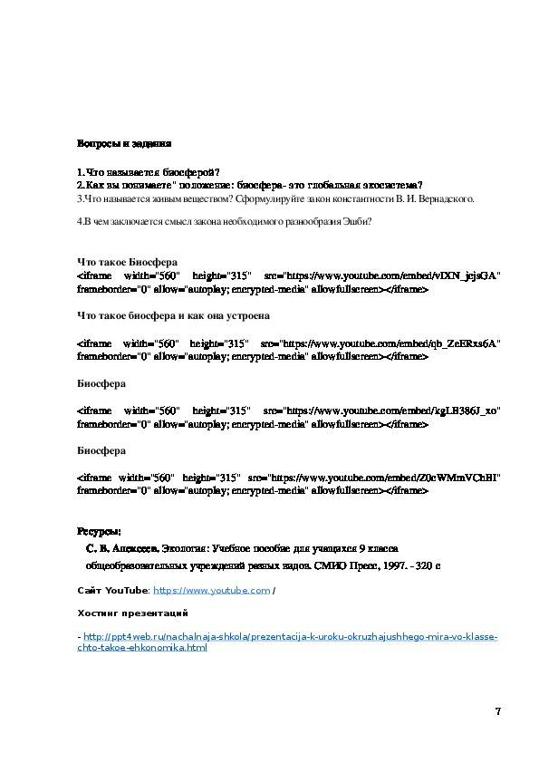 Урок №33.Тема. Биосфера как глобальная экосистема