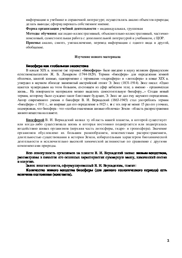 Конспект урока "Биосфера как глобальная экосистема" 9 класс.