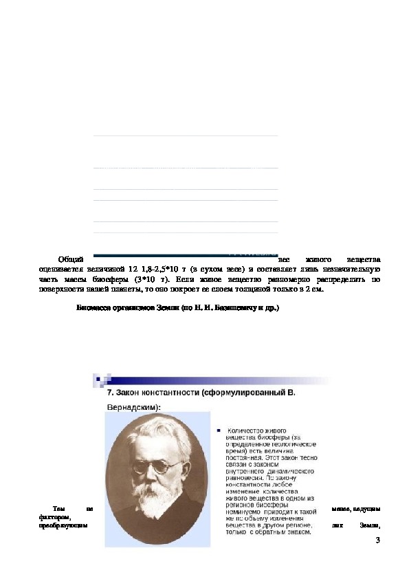часть массы биосферы (3*10 т). Если живое вещество равномерно распределить по