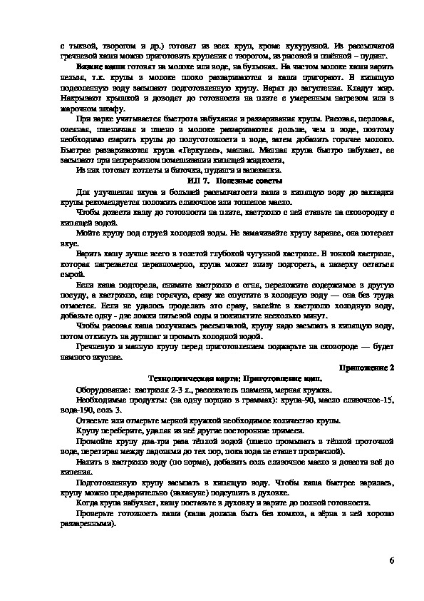 Блюда из крупы. 6 класс