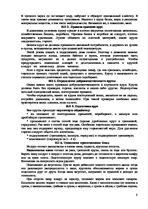 ИЛ 5. Подготовка круп