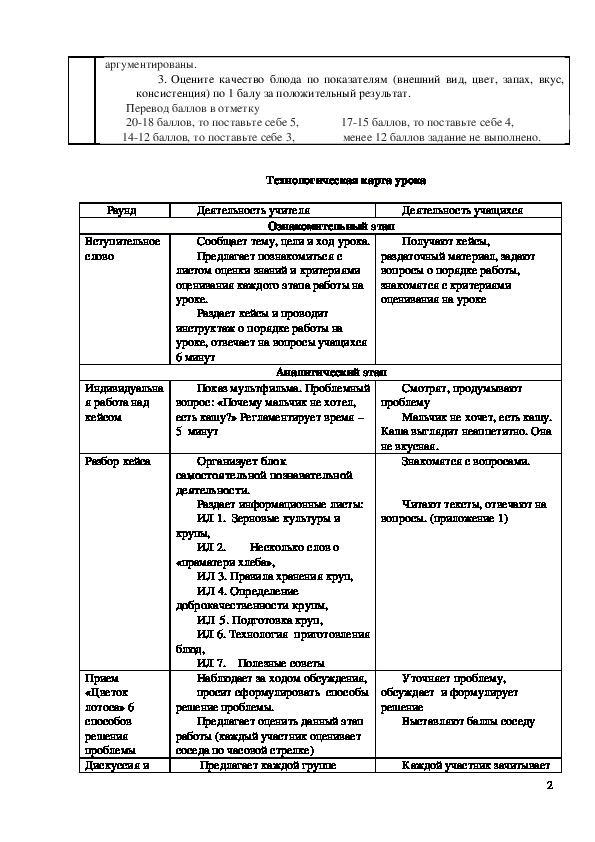 Технологическая карта урока