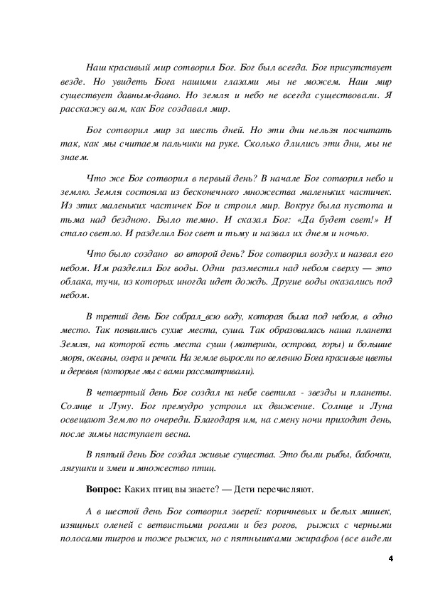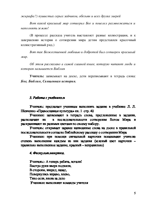 ознакомление учащихся со Священной историей о сотворении Мира