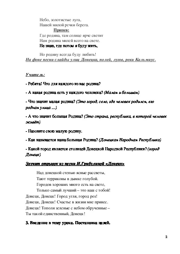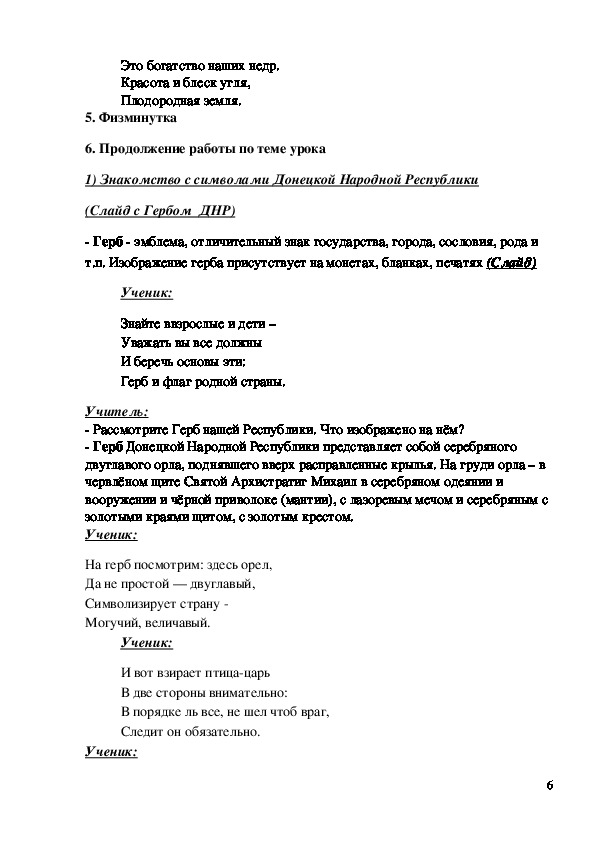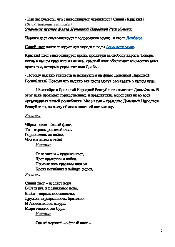 представления учащихся о Донецкой Народной Республике как Родине, о