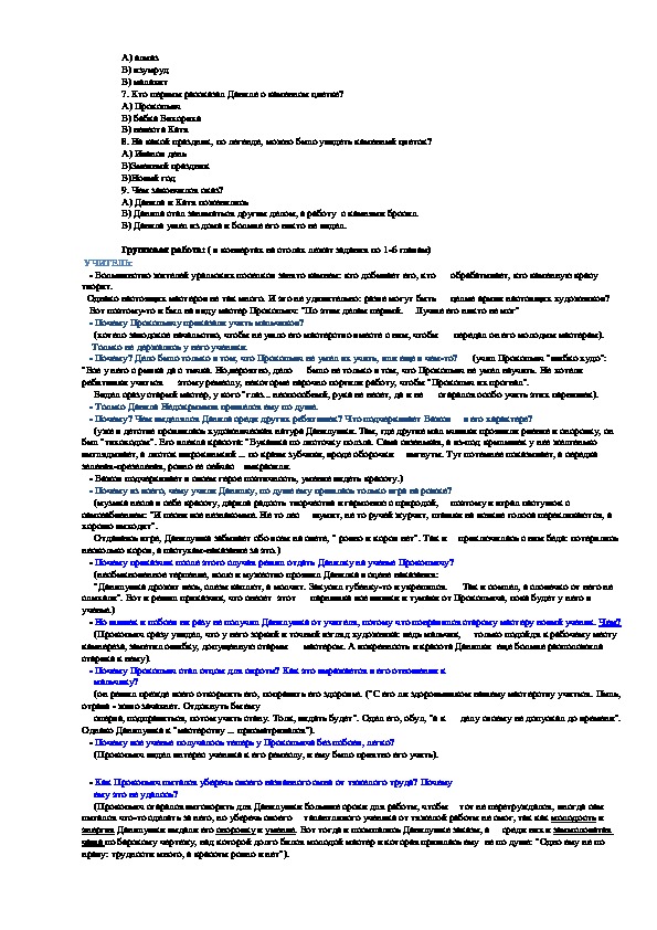 камнереза, заметил ошибку, допущенную старым мастером. А искренность и красота Данилки еще больше расположила