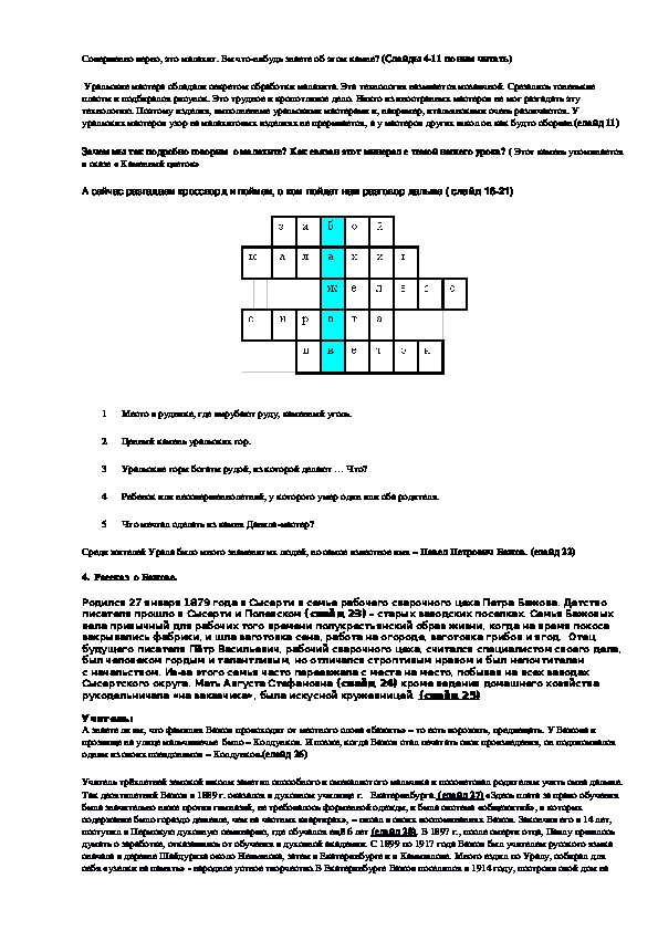 Зачем мы так подробно говорим о малахите? Как связан этот минерал с темой нашего урока? ( Этот камень упоминается