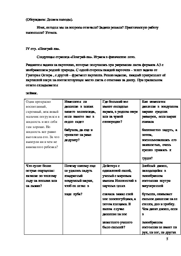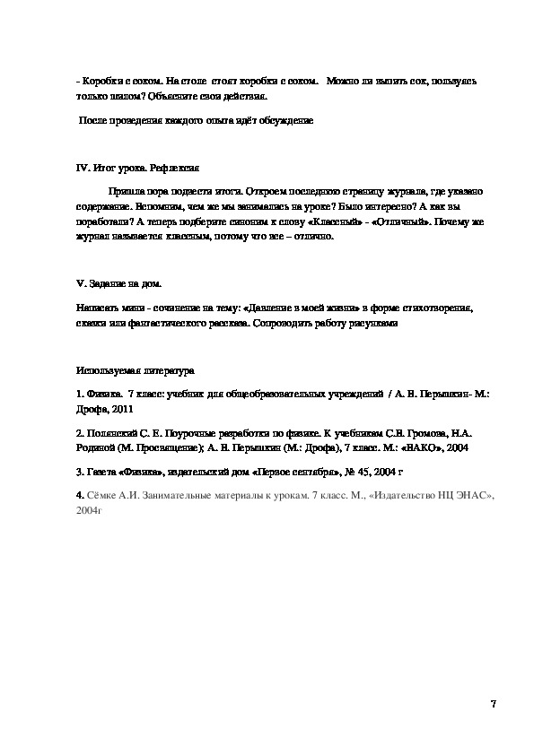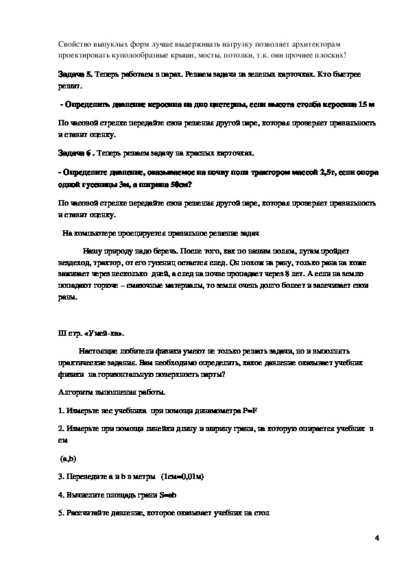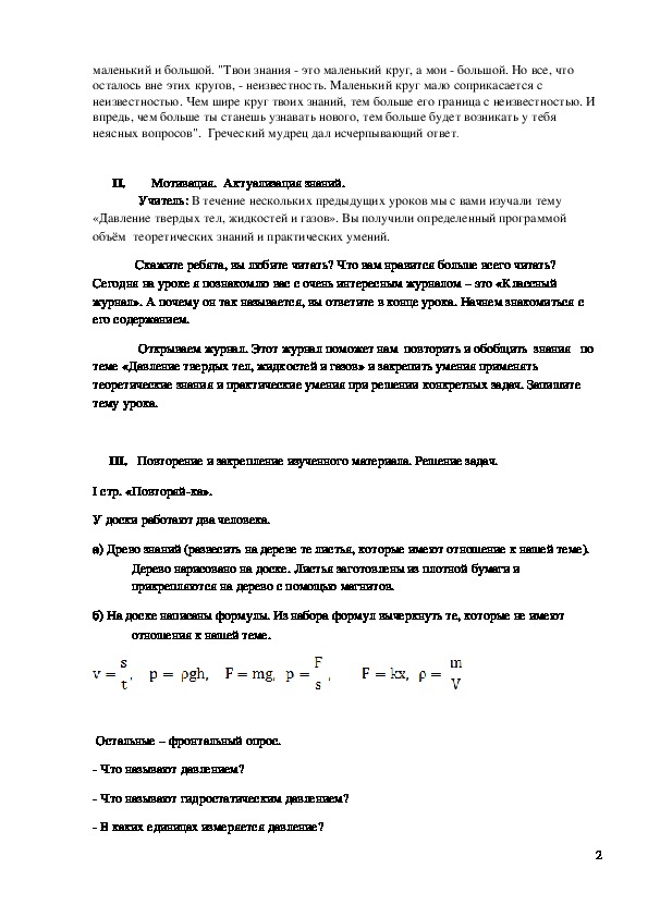 Конспект урока "Давление твёрдых тел, жидкостей и газов. Решение задач" 7 класс.Урок физики в 7 классе
