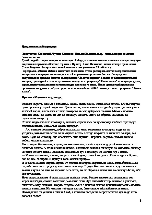 Ребёноксирота, одетый в лохмотья, сидел, съёжившись, возле дома богача. Его вытянутая