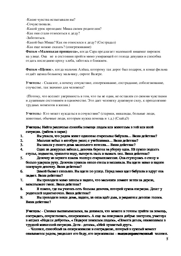 сочувствовать, соболезновать, сопереживать и т.д.,) учить работать в группе, уважать