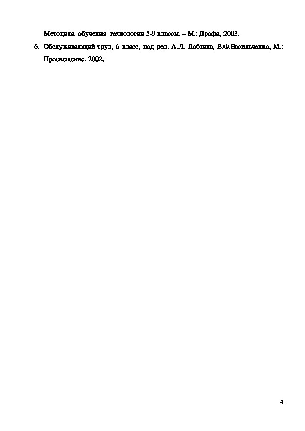 3Методика обучения технологии 59 классы. – М.: Дрофа, 2003.