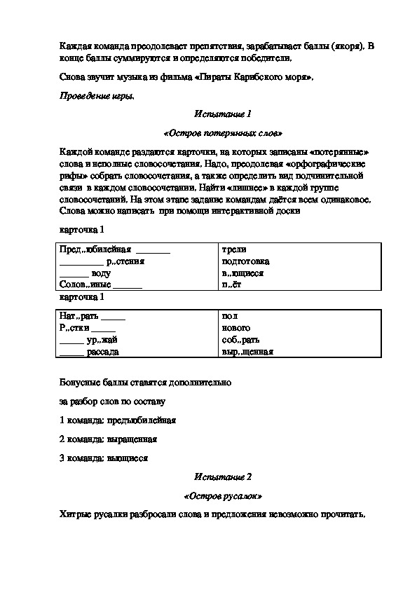 Хитрые русалки разбросали слова и предложения невозможно прочитать.каждой команде даётся конверт, в котором слова, напечатанные на бумаге, их