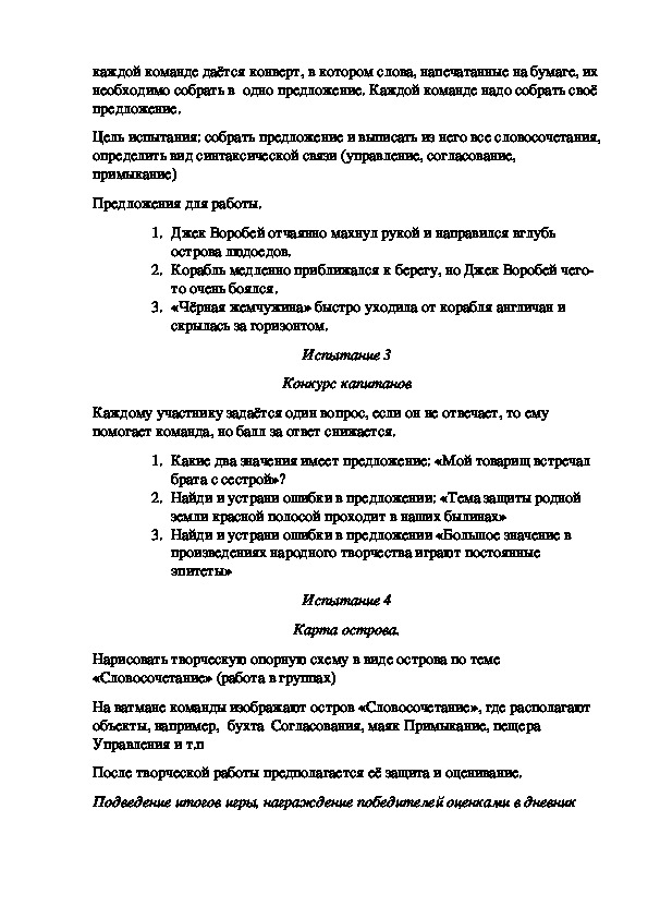необходимо собрать в одно предложение. Каждой команде надо собрать своё