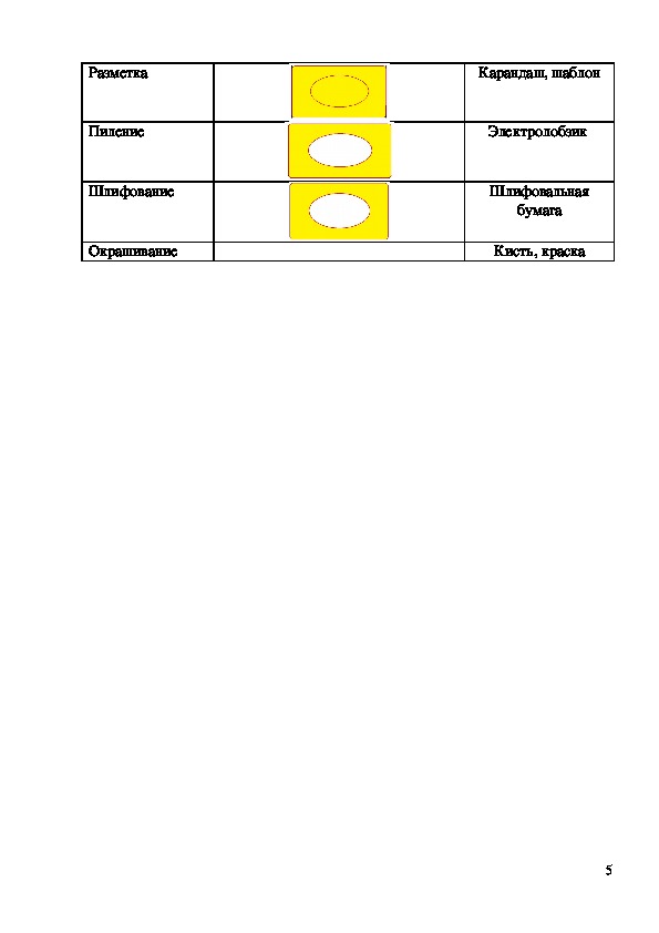 Инструменты и оборудование: Компьютерный класс, электроинструменты, верстак, шаблоны, заготовки, карандаш.