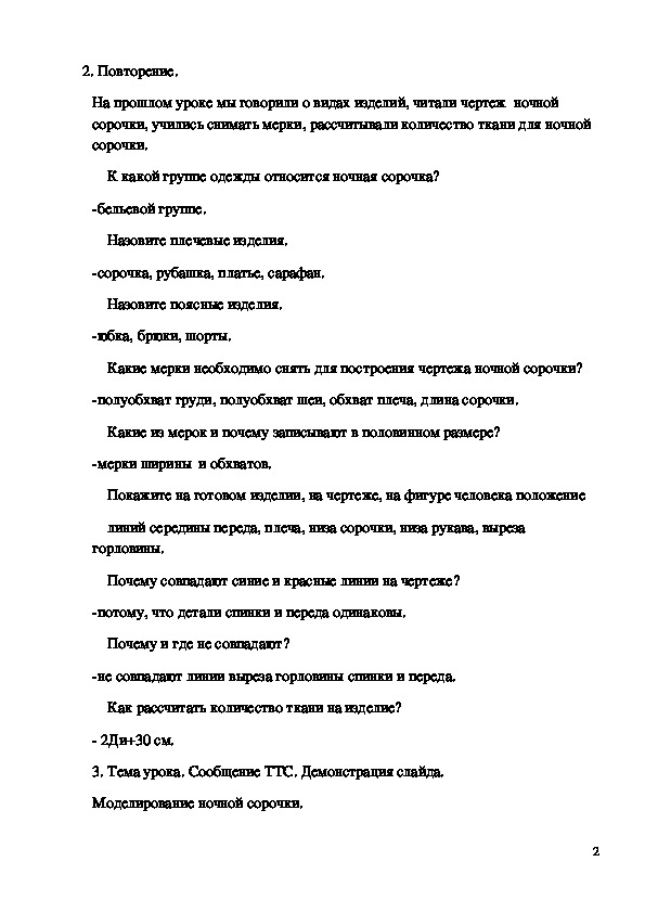 сорочки, учились снимать мерки, рассчитывали количество ткани для ночной