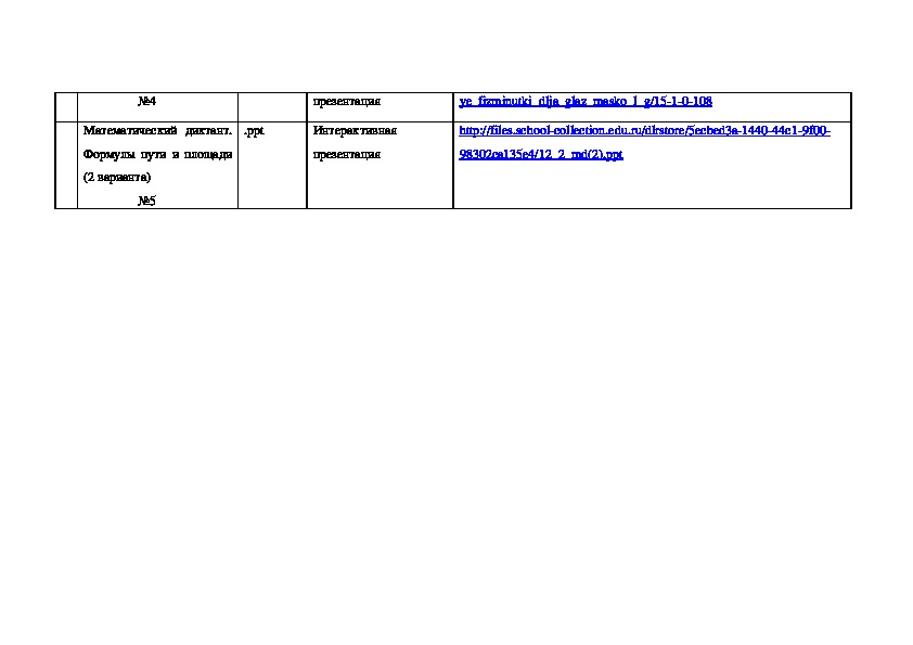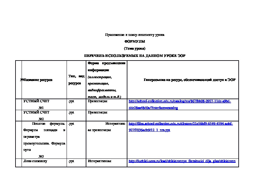 ПЕРЕЧЕНЬ ИСПОЛЬЗУЕМЫХ НА ДАННОМ УРОКЕ ЭОР