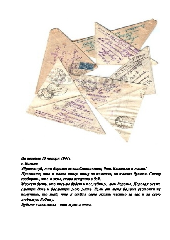 О чём говорят письма огненных лет?Не позднее 13 ноября 1941г.