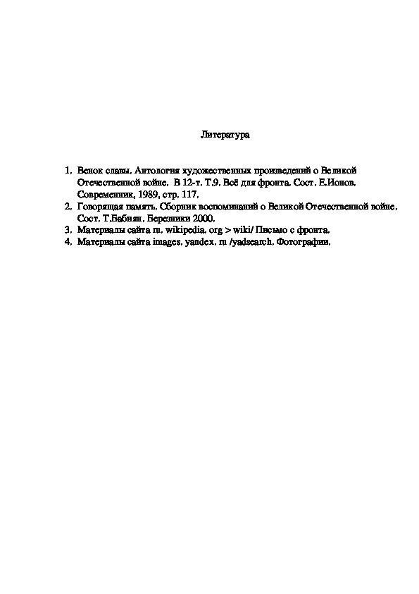3. Материалы сайта ru. wikipedia. org > wiki/ Письмо с фронта.