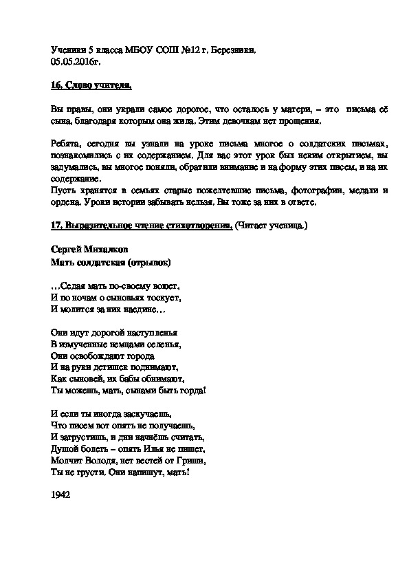 Опомнитесь, верните матери письма! Просите прощения у неё на коленях!Ученики 5 класса МБОУ СОШ №12 г. Березники.