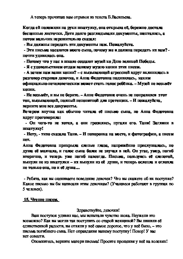 пока она читает и держит его в руках.А теперь прочитаю вам отрывок из текста Б.Васильева.