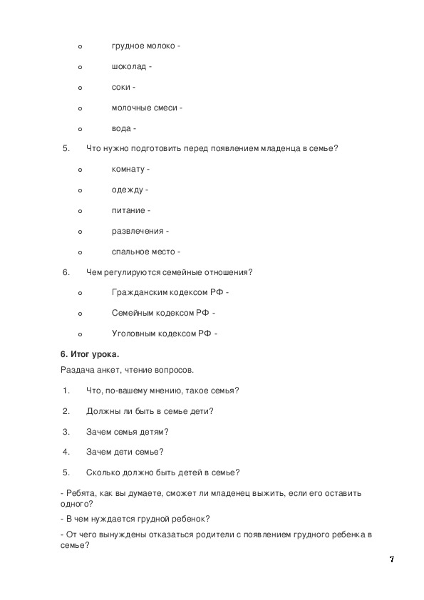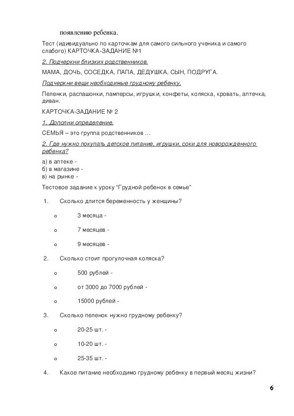 Тестовое задание к уроку “Грудной ребенок в семье”