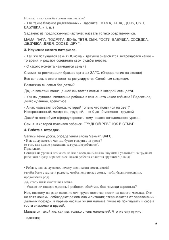 Грудной ребенок в семье. Урок социально-бытовой ориентировки в 8-м классе