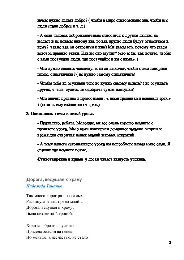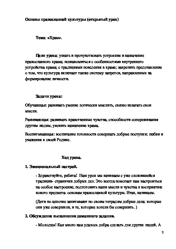 Развивающая: развивать нравственные чувства, способности сопереживания другим людям, уяснить назначение храма.