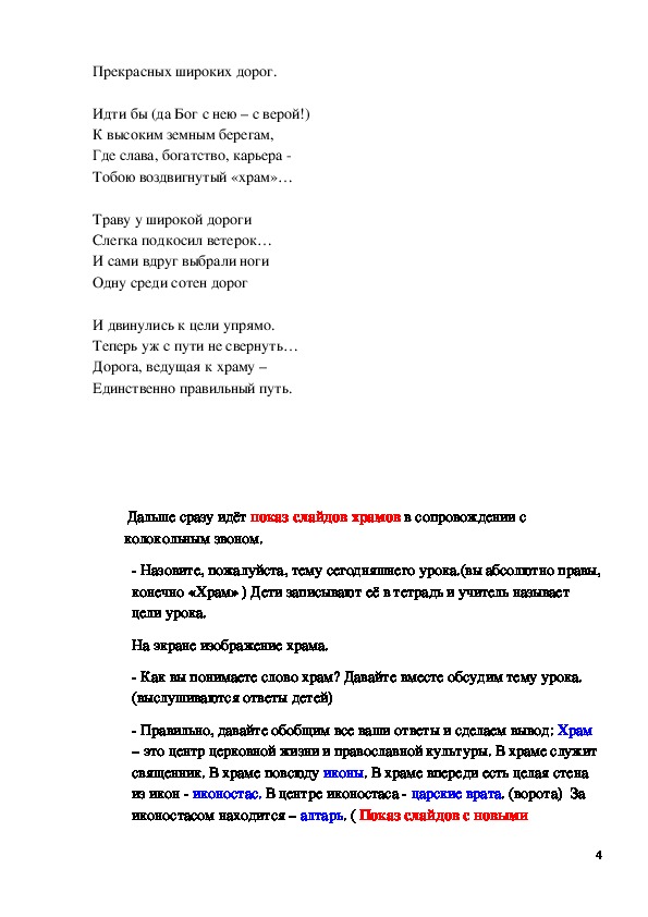 Наш урок подходит к концу. Показ слайдов о дороге к храму. Какое