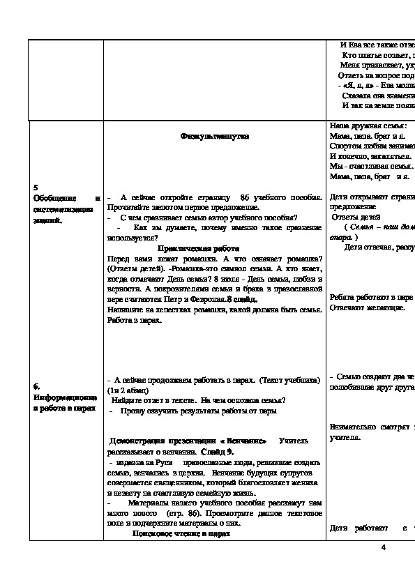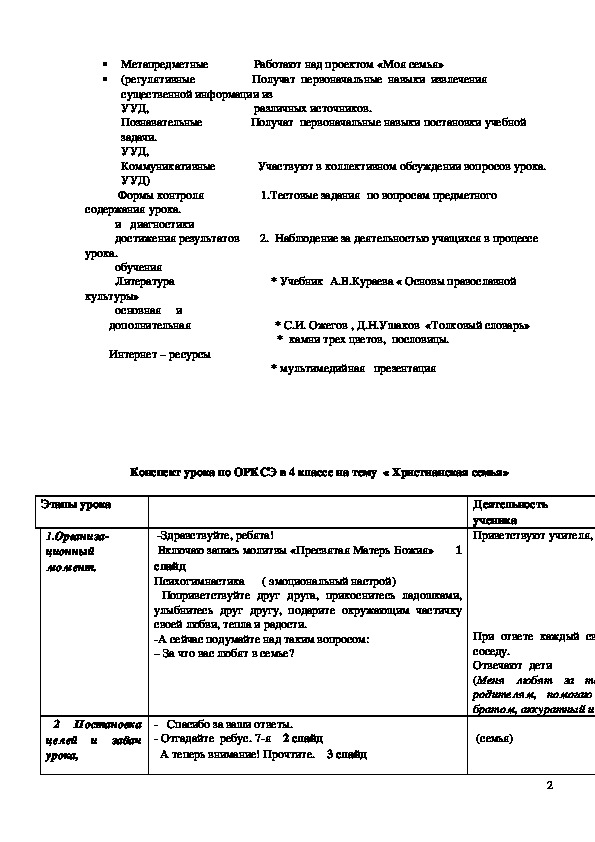 Конспект урока по ОРКСЭ в 4 классе на тему « Христианская семья»