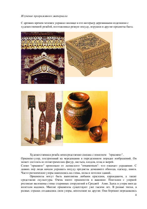 художественной резьбой, изготавливал резную посуду, игрушки и другие предметы быта.