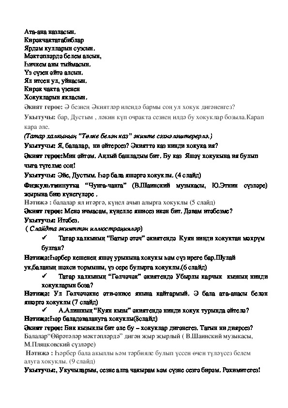 Укытучы:Тәрбия сәгатен тәмамлап, кадерле кунагыбыз сиңа Бала хокуклары