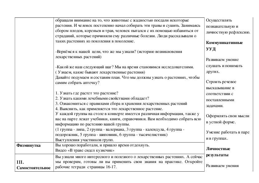 Планируемые результаты: учащиеся научатся называть несколько лекарственных растений и