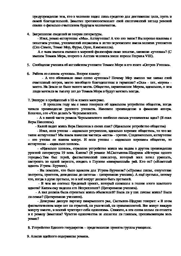 9. Анализ идейного содержания романа. А не является ли город – полис Замятина Глуповым – Непреклонском, только через
