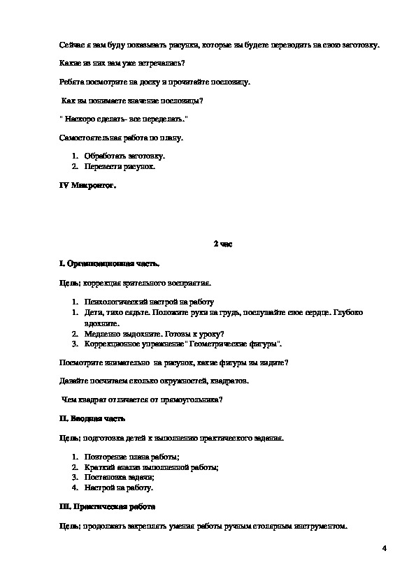 Цель: развитие познавательной активности по трудовому обучению, коррекция мышления,