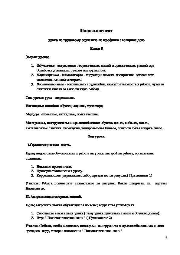 Учитель: Ребята, чтобы вспомнить столярные инструменты и приспособления, мы с вами