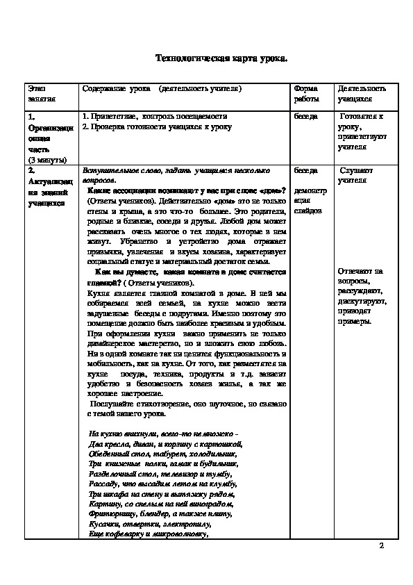 Технологическая карта урока.