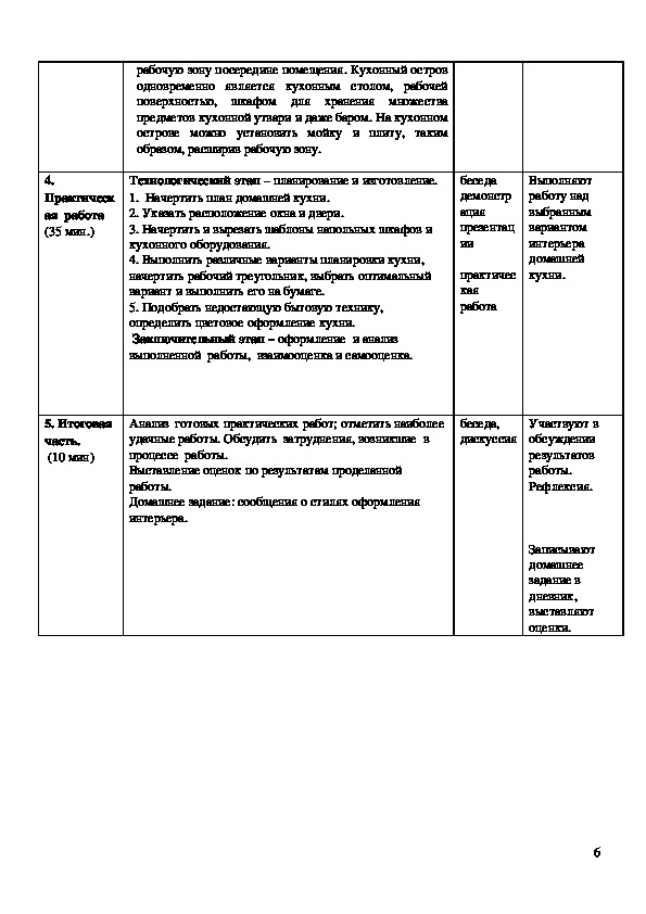 Конспект урока "Интерьер кухни-столовой" 5 класс.Конспект урока по технологии