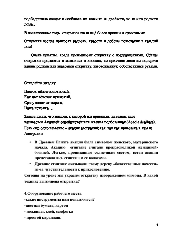 Оборудование: презентация, образец открытки, инструменты и материалы