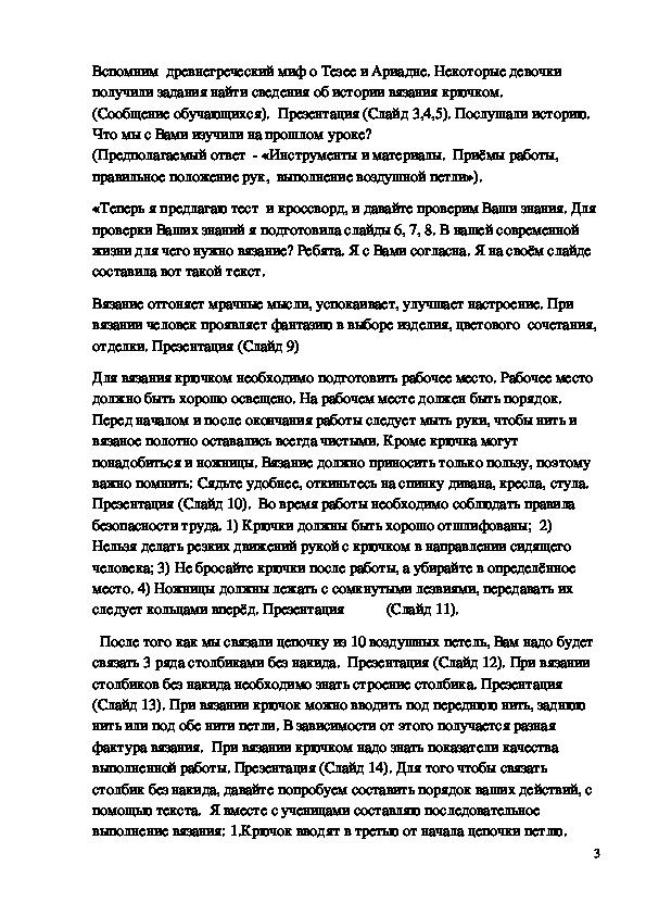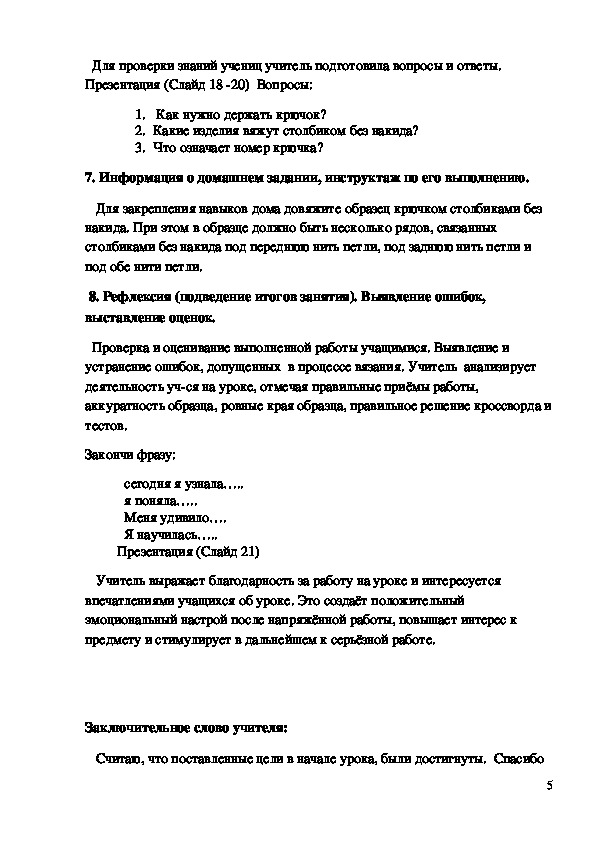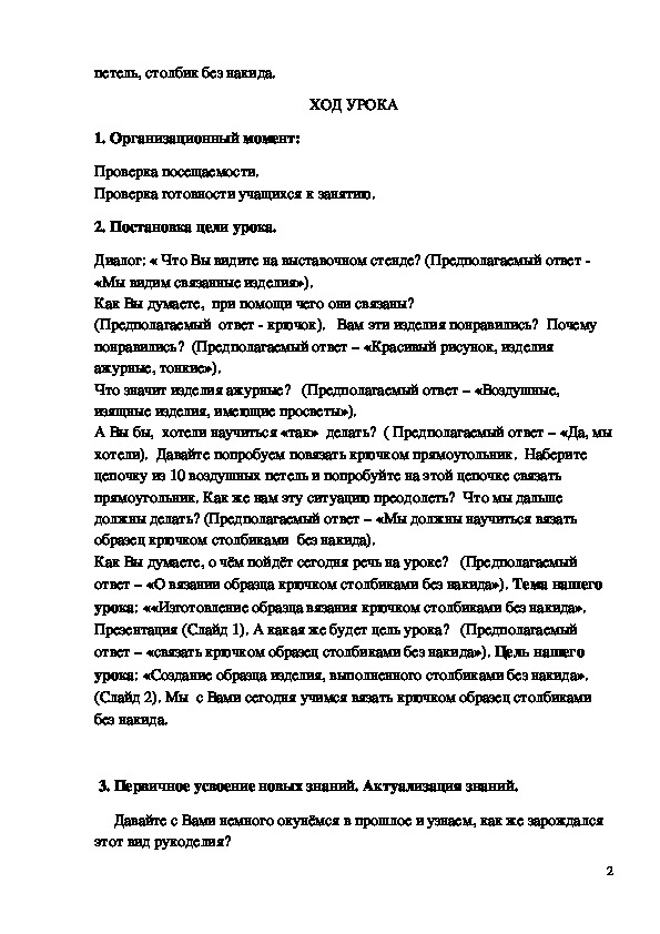 ответ – «связать крючком образец столбиками без накида»). Цель нашего