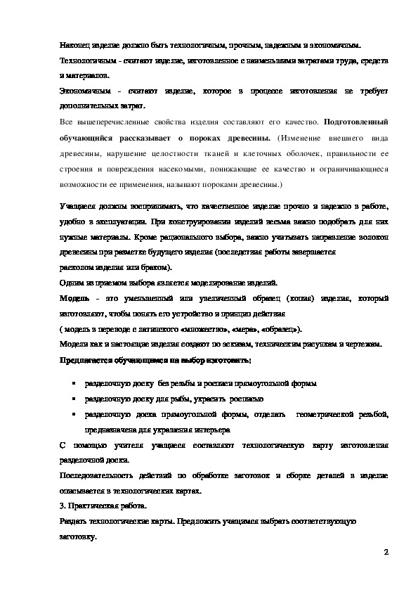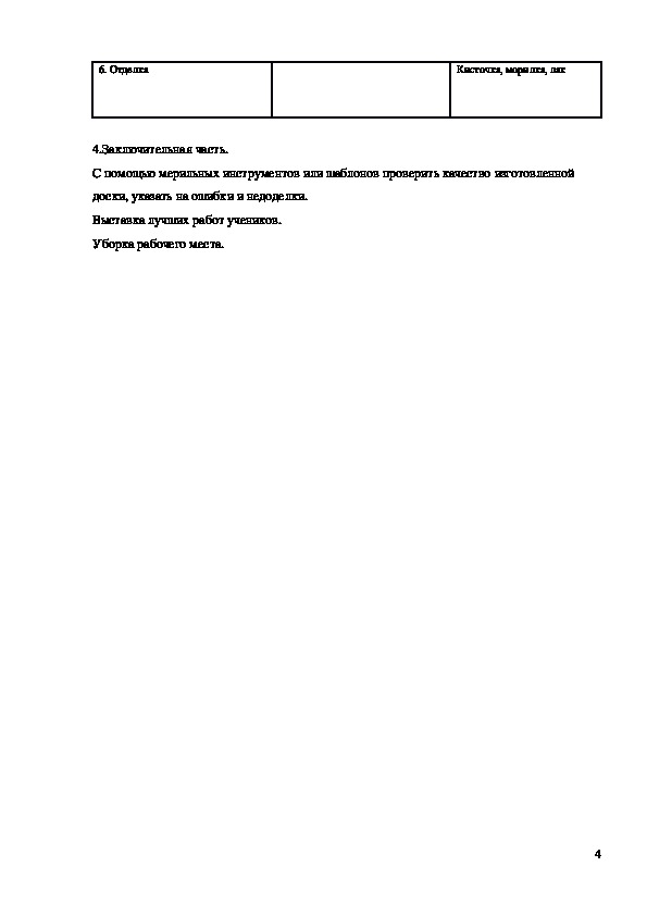 Цель: Ознакомить с технологией изготовления изделий из древесины; закрепить умения и