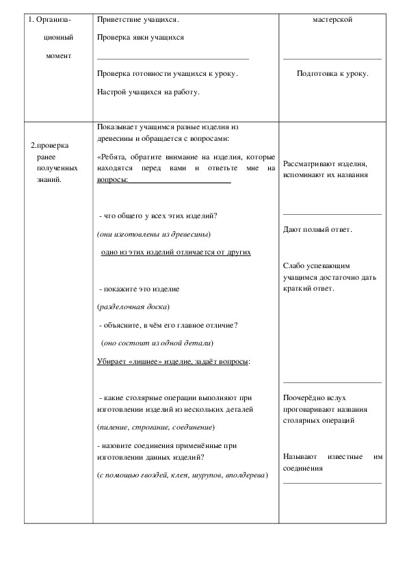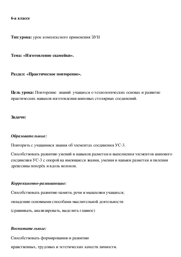 КОНСПЕКТ ЗАНЯТИЯ ТРУДОВОГО ОБУЧЕНИЯ