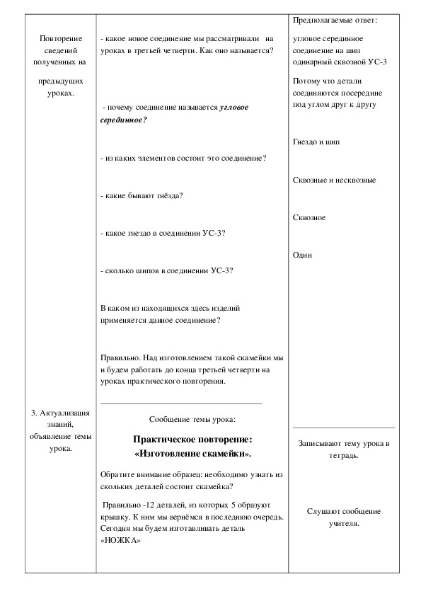 соединения УС3 с опорой на имеющиеся знания, умения и навыки разметки и пиления