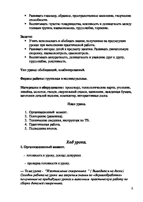 • Закрепить и формировать навыки работы с деревообрабатывающим инструментом при выполнении различных операций (разметка, строгание, пиление, сверление, зачистка, отделка), с технологическими картами, на сверлильном станке.