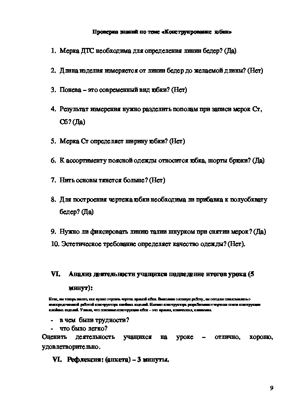 8Проверка знаний по теме «Конструирование юбки»